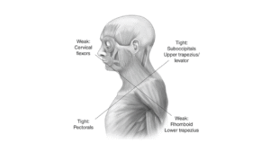 今日の画像は頸部(首のことです)が前方に突き出るような形になっていますが原因は胸椎(胸あたり)が後ろに出ているため頸部はしかたなく前方に突出してしまっている状態を表しています。この場合、頸部ではなく胸椎の修正していけば自然と頸部は戻ります。