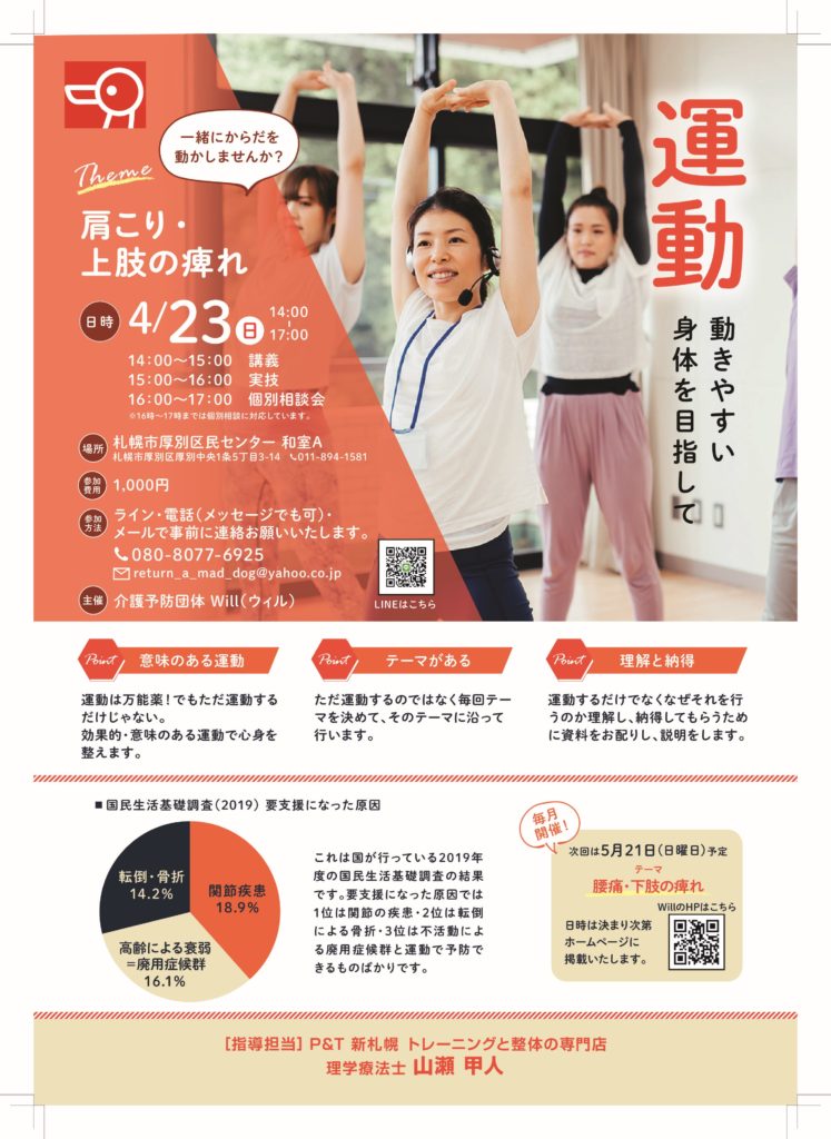 4月23日(日曜日)に厚別区民センターで肩こりについて解説と実技で約2時間行いました。 次回は腰痛について、5月21日(日)厚別区民センターです。 お電話・ライン・メール...